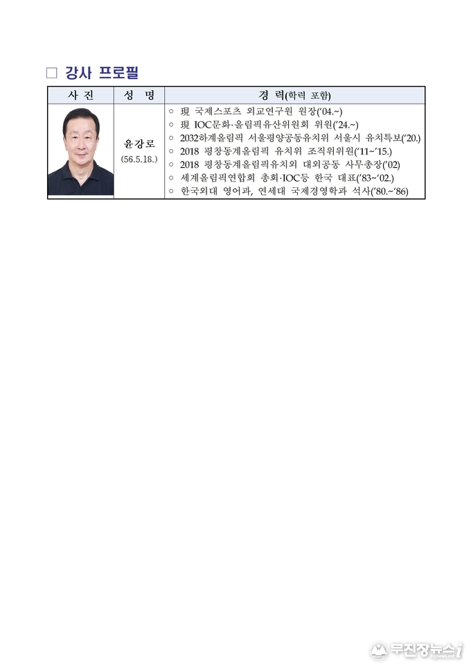 ○ 전주 하계올림픽 유치 역량 강화, 윤강로 원장 초청 특강 개최