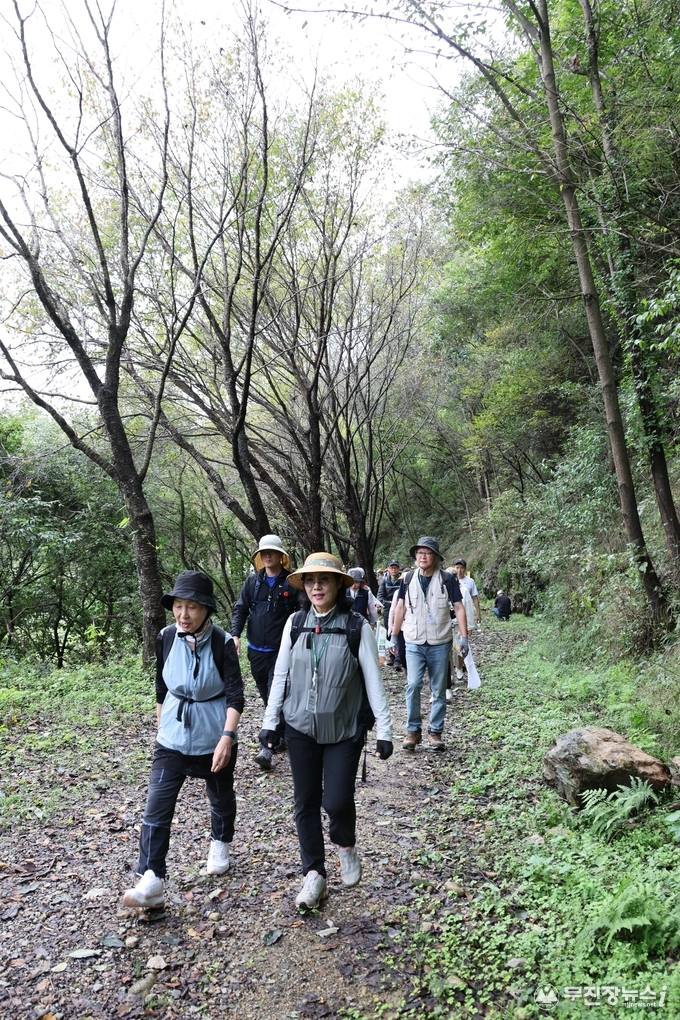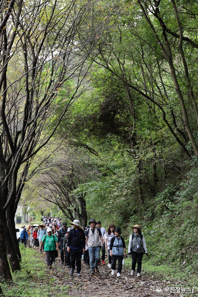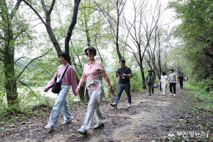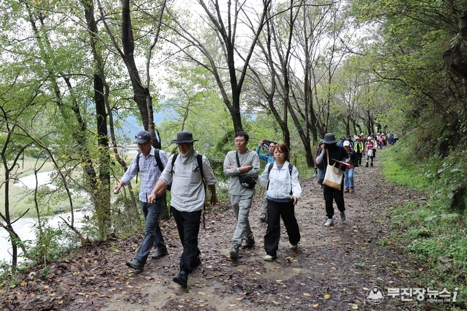 참가자들은 무주군 부남면 잠두강변길에 집결해 요대마을, 안요대마을을 거쳐 무주읍 서면마을 소이나루 공원까지 7.4km를 함께 걸으며 금강변 산야에 깃든 가을의 정취를 만끽했다.