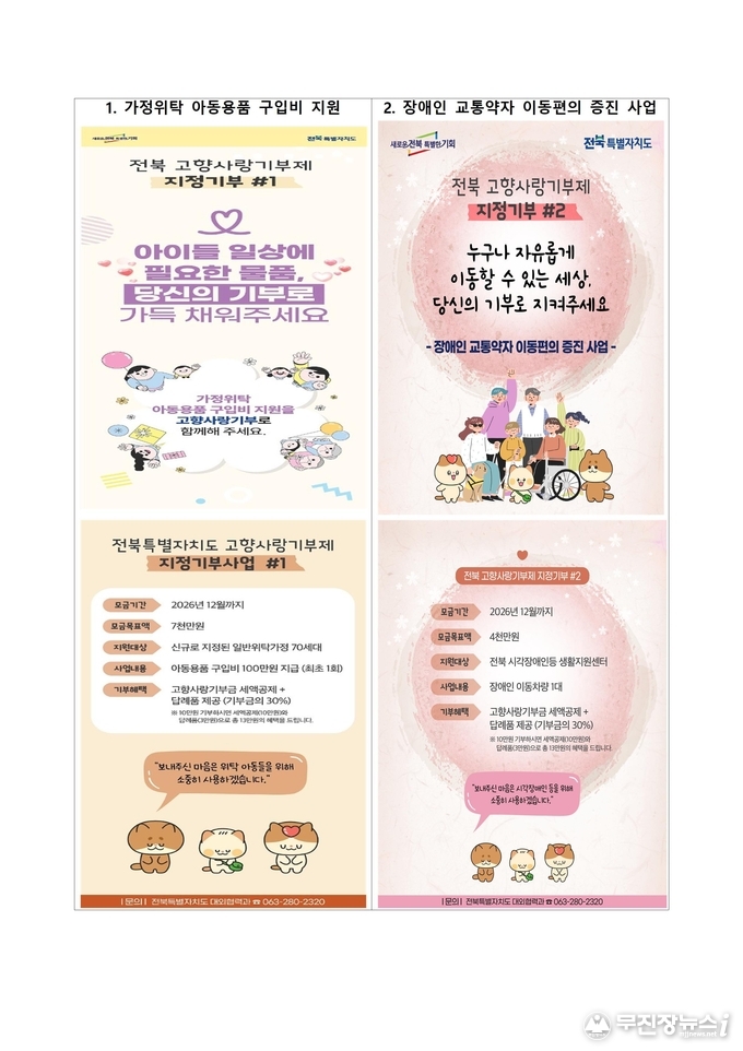 백경태 전북특별자치도 대외국제소통국장은 “이번 지정기부사업은 기부와 복지가 연결되는 선순환 구조의 출발점”이라며 “도민의 따뜻한 관심과 참여가 위탁아동과 시각장애인에게 희망을 전해줄 것”이라고 말했다.