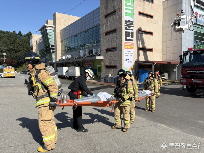 진안소방서(서장 김충국)는 22일 오후 2시 진안군 진안읍 소재 홍삼한방센터에서 재난현장 대응역량 강화를 위한 ‘2025년 재난 대비 긴급구조종합훈련'을 실시했다고 밝혔다.