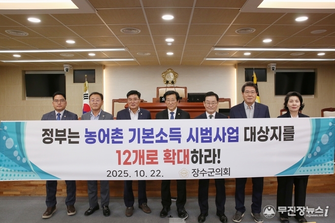 장수군의회(의장 최한주)는 10월 22일 본회의장에서 정부가 지난 10월 20일 발표한 농어촌 기본소득 시범사업 최종 선정 결과와 관련하여 “1차 선정된 12개 전체 지역으로 확대 지정”할 것을 촉구했다.