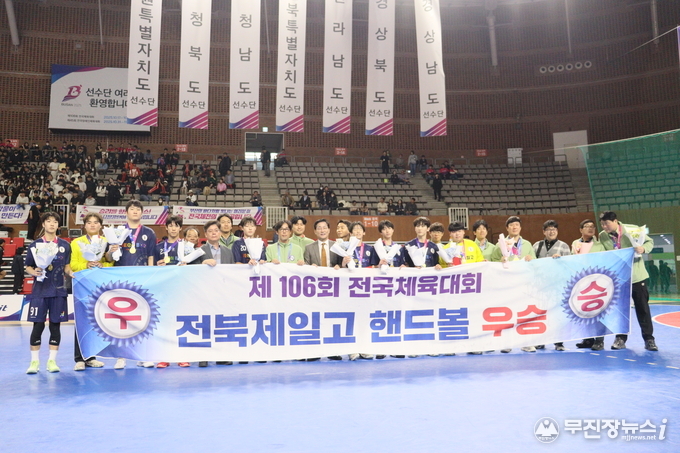 제106회 전국체육대회 마지막날, 핸드볼 남자 18세 이하부 결승전에서 전북제일고등학교(교장 조형익)가 충청북도 대표 청주공업고등학교를 32대24로 제압하며 금메달을 획득했다.