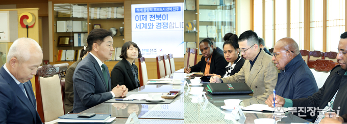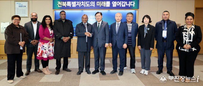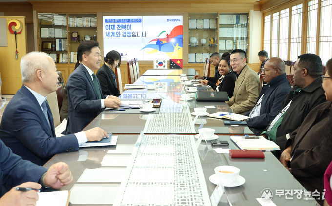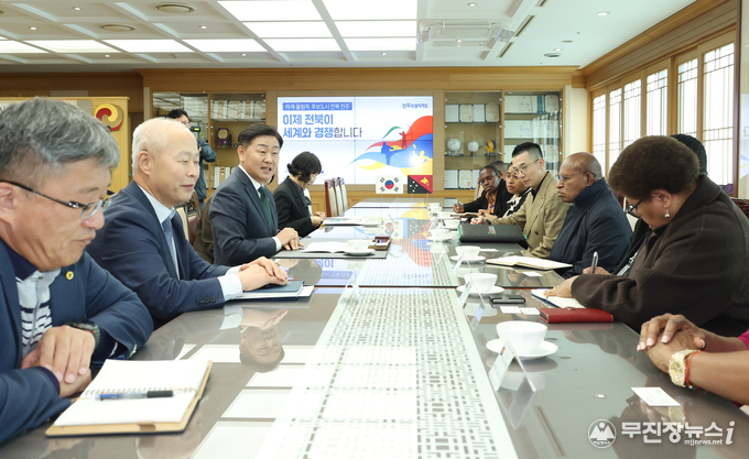 전북특별자치도는 10월 27일(월) 파푸아뉴기니 국제무역·투자부 리차드 마루(Richard Maru) 장관을 단장으로 한 대표단이 전북도를 공식 방문해, 김관영 도지사와 면담을 갖고 농업, 교육, 국제개발협력 등 다양한 분야의 협력 확대 방안을 논의했다고 밝혔다.