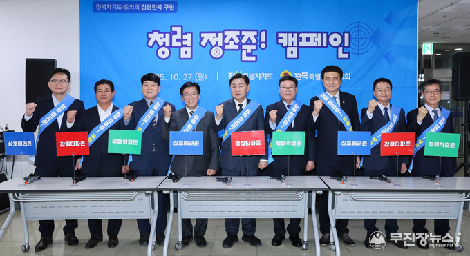 문승우 의장은 “「청렴 정조준 공동 캠페인」을 통해 공직사회 전반에 청렴 의식이 더욱 확산되기를 기대한다”며, “도의회 역시 도민의 대표기관으로서 청렴을 핵심가치로 삼는 의정활동을 펼쳐 나가겠다”고 밝혔다.