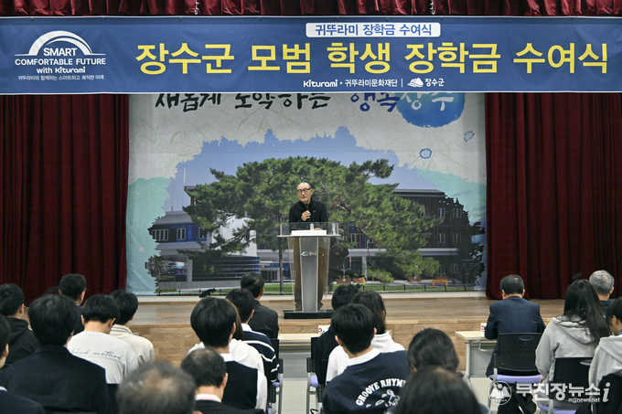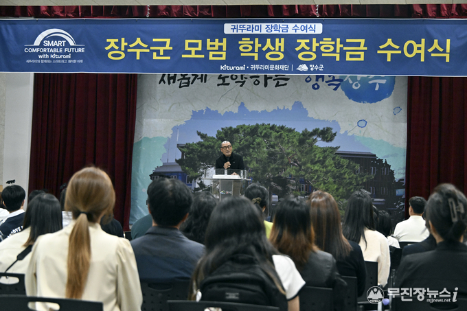 장수군은 24일 군청 군민회관에서 ‘2025년 귀뚜라미문화재단 장수군 모범학생 장학금 수여식’을 개최했다고 밝혔다.