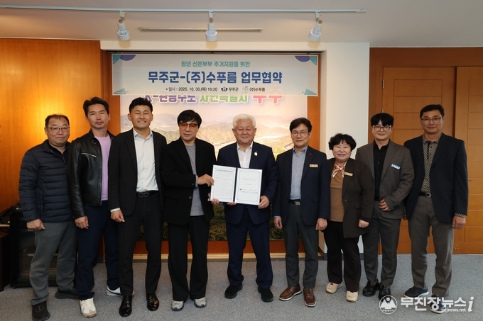 무주군은 지난 30일 ㈜수푸름과 업무협약을 체결하고 지역 내 신혼부부를 위한 특별공급 임대주택 28세대를 확보했다고 밝혔다.