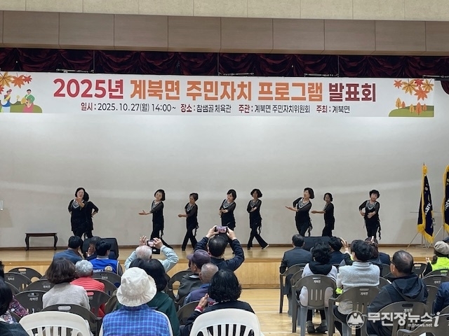 이어 열린 ‘제3회 계북면 주민자치 프로그램 발표회’에서는 요가, 건강라인댄스, 하모니카, 노래교실, 사물놀이 등 다채로운 무대가 펼쳐졌으며, 민화·서예·인형극 작품 전시도 함께 진행돼 관람객들의 큰 호응을 얻었다.