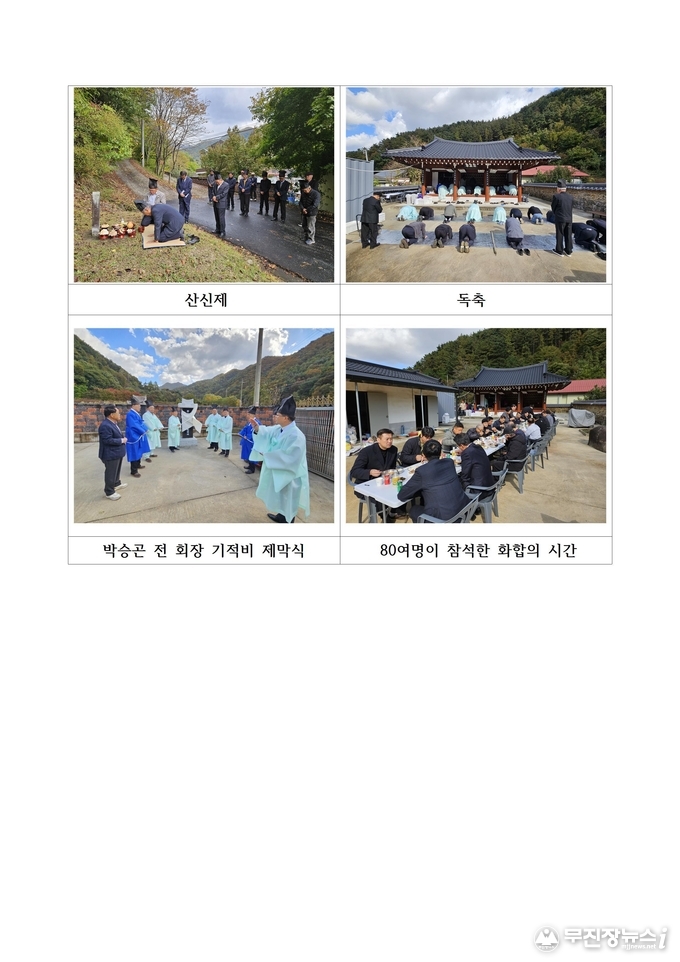 이날 제사를 마치고 30여년 동안 백운종중 회장으로 종중 발전에 크게 기여하고 헌신한 前 회장 승곤(承坤 / 現 문장)의 기적비 제막식도 함께 거행되어 더욱 의미 있는 날이 되었다.