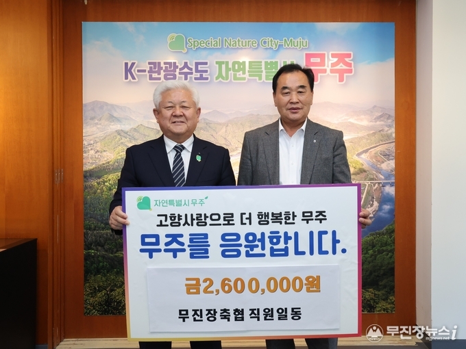 무진장축협 임직원들이 무주군에 고향사랑기부금 260만 원을 기탁했다. 이날 기탁은 3년 연속 고향사랑기부제 동참이라는 점에서 큰 관심을 모으고 있다.