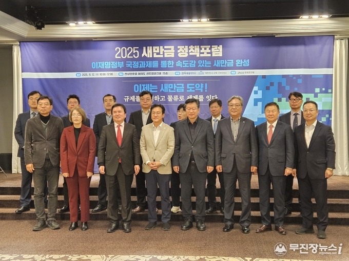 전북자치도는 서울 여의도 켄싱턴호텔에서 「2025년 새만금 정책포럼」을 개최하고, ‘이재명 정부 국정과제를 통한 속도감 있는 새만금 완성’을 주제로 새만금 글로벌 메가샌드박스 구축과 서해권 K-물류거점 전략을 심도 있게 논의했다고 밝혔다.