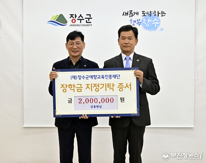 장수군은 14일 (재)장수군애향교육진흥재단이 김용현 씨로부터 장학금 200만 원을 기탁받았다고 밝혔다.