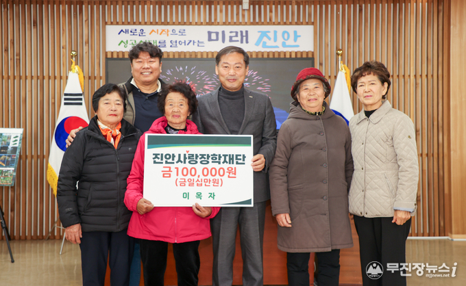 백운면에 거주하는 이옥자 씨가 중학교 검정고시 합격을 기념하여 21일 진안사랑장학재단(이사장 전춘성)에 장학금 10만원을 기탁하였다.