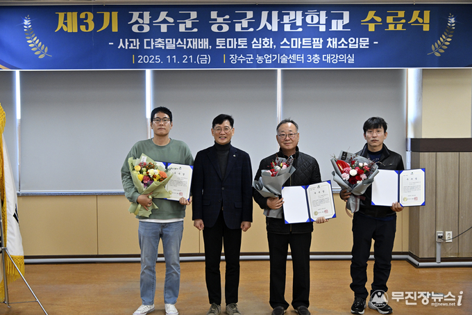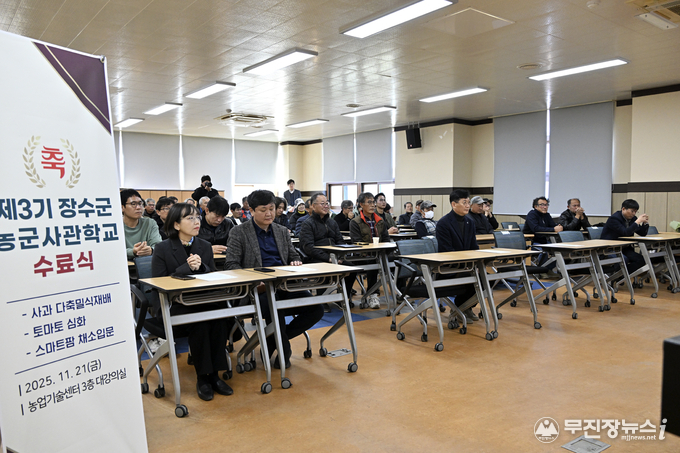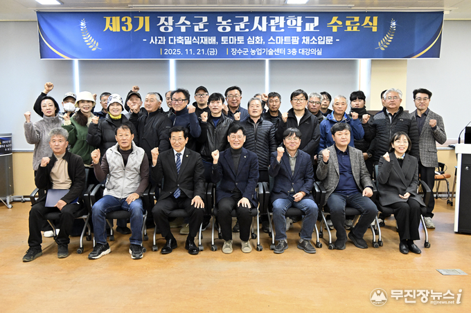 장수군은 농업기술센터 대강의실에서 미래 농업을 선도할 전문 인력 양성을 위한 ‘농군사관학교 3기 수료식’을 21일 성황리에 개최했다고 밝혔다.