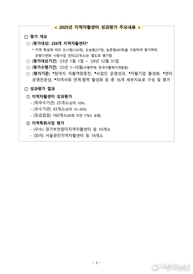 우수기관에는 인센티브가 지급되며, 전북은 총 12개소에 1억 4천여만 원이 지원된다. 해당 예산은 종사자 성과급과 센터 운영비로 활용돼 현장 사기진작과 서비스 품질 제고에 사용될 예정이다.