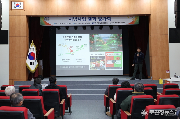 무주군은 지난 25일 농민의 집 농민마당에서 ‘2025 사과 병해충 예찰 방제 시범사업’ 평가회를 개최했다고 밝혔다.