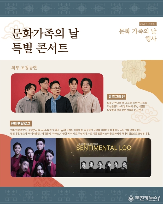 또한 판소리와 바이올린, 가야금과 피아노, 다양한 타악기로 퓨전국악과 클래식 크로스오버 사운드를 구현하는 음악그룹 ‘센티멘탈로그’와 클래식과 재즈를 기반으로 뛰어난 가창력을 자랑하는 ‘뮤즈그래인’ 등 예술인 초청공연도 펼쳐질 예정이다.