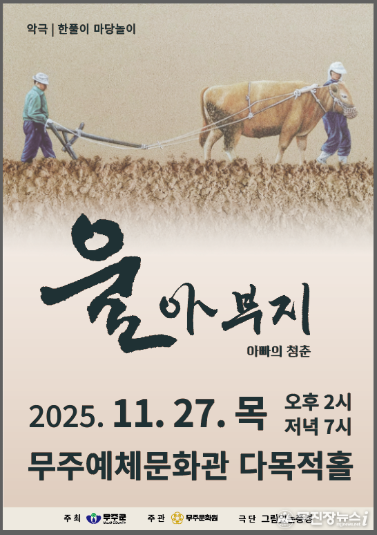 무주군이 가을에서 겨울로 이어지는 11월의 끝자락을 공연 등 풍성한 볼거리로 채운다. 무주군에 따르면 27일에는 (사)무주문화원과 극단 ‘그림있는 풍경’이 공동 주관하는 악극 ‘울아버지(아빠의 청춘)’가 무대에 오른다.