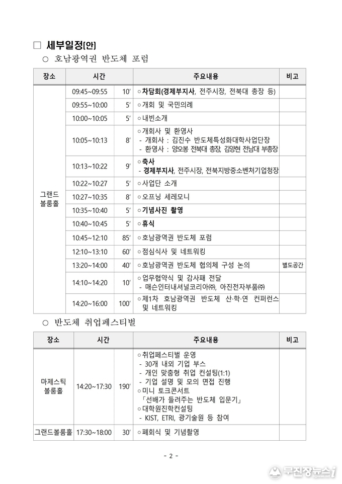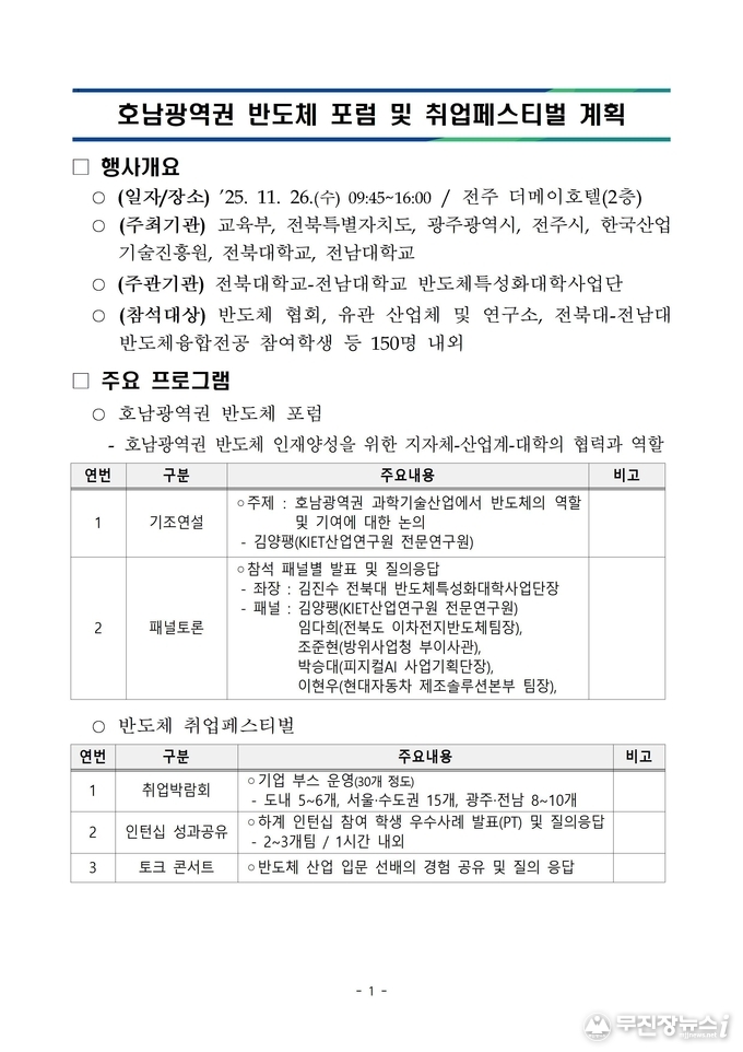 김종훈 전북자치도 경제부지사는 "이번 포럼과 취업페스티벌이 지역 인재와 산업이 함께 성장하는 중요한 전환점이 되길 바란다"며 "호남권이 미래 반도체 산업의 새로운 성장축으로 도약할 수 있도록 지·산·학 협력을 강화하겠다"고 말했다.