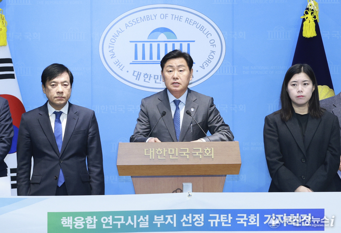 전북특별자치도와 전북 지역 국회의원들이 27일 국회 소통관에서 기자회견을 열고 과학기술정보통신부의 '핵융합(인공태양) 핵심기술 개발 및 첨단 인프라 구축사업' 우선협상지역 선정 결과에 반발했다.