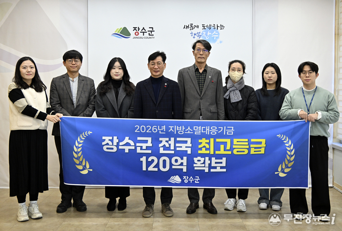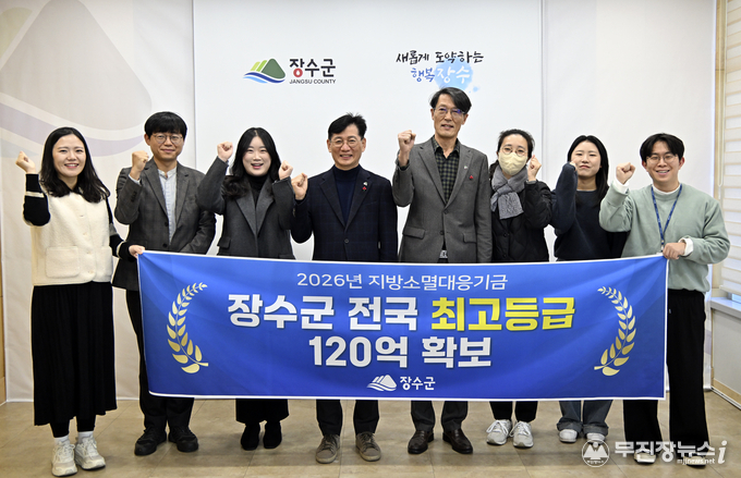 장수군은 행정안전부가 실시한 ‘2026년 지방소멸대응기금사업 투자계획 최종 평가’에서 전국 최고 등급을 받아 전북특별자치도내에서는 유일하게 ‘우수지역’으로 선정되어 120억 원의 기금을 확보했다고 5일 밝혔다.