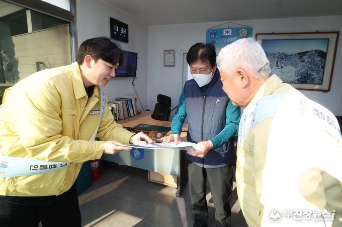 첫날인 9일에는 안전·재난 관련 공무원들과 마을 이장, 지역 자율방재단 등 20여 명이 함께 무주읍 시가지를 순회하며 △내 집, 내 점포 앞 눈 치우기, △제설 시 안전 수칙, △대설·한파 시 국민 행동 요령 등을 홍보했다.