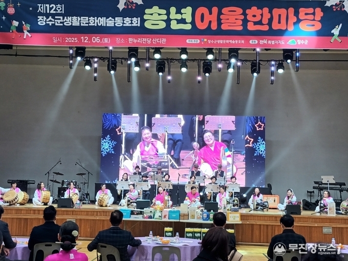 장수군은 한누리전당 산디관에서 지난 6일 생활문화예술동호회(이하 생문동)가 주최·주관한 ‘제12회 장수군 생문동 송년 어울한마당’이 성황리에 열렸다고 밝혔다.