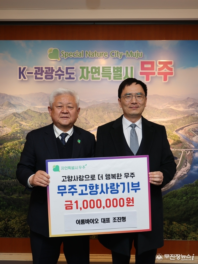 광주광역시에 소재해 있는 ㈜이룸바이오가 지난 15일 무주군에 고향사랑기부금 1백만 원을 기탁하며 훈훈함을 전했다.