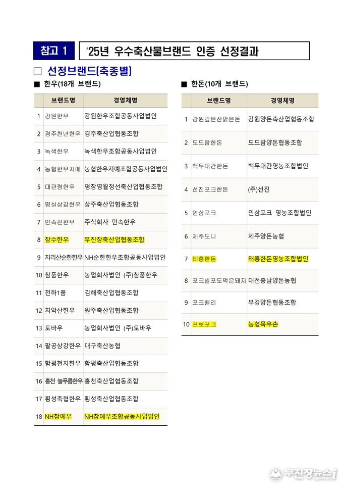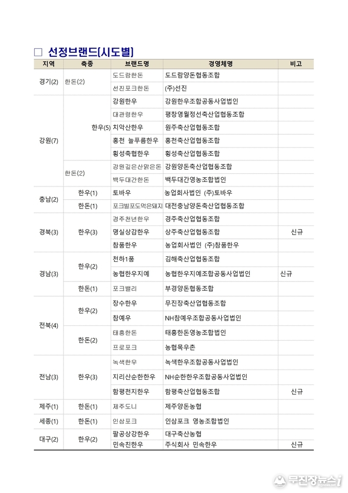 이번에 인증을 받은 브랜드는 한우 부문에 참예우와 장수한우, 한돈 부문에 목우촌 프로포크와 태흥한돈 등 총 4곳이다. 이들 브랜드는 소비자가 믿고 구매할 수 있는 지역 대표 축산물로 인정받았다.