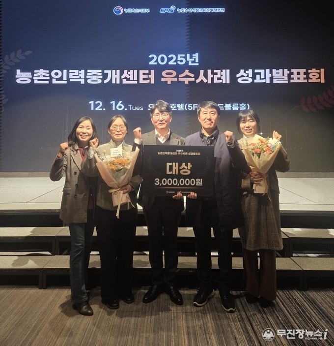 진안군은 지난 16일, 2025년도 농촌인력중개센터(농촌형·공공형 계절근로) 운영 우수 사례 성과발표회에서 공공형 계절근로자 운영 주체인 진안군 조공법인(대표 최종진)이 대상을 수상했다고 밝혔다.