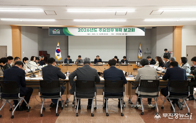 진안군은 18일 군청 강당에서 ‘2026년 주요업무계획 보고회’를 개최하고, 중장기 군정 운영 방향과 핵심 추진 과제를 점검했다.