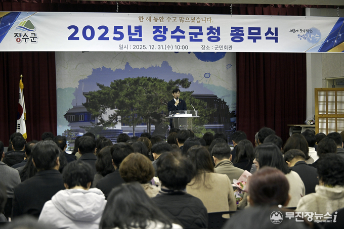 장수군은 지난 31일 군민회관에서 직원 200여 명이 참석한 가운데 2025년 종무식을 열고 을사년 한 해의 업무를 마무리했다.