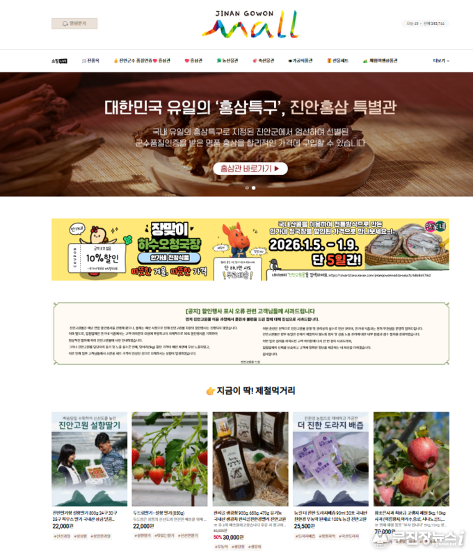 진안군 직영 온라인 쇼핑몰 ‘진안고원몰’이 2025년 연 매출 30억원을 달성하며 공공형 온라인 유통 플랫폼의 성공 모델로 확고히 자리 잡았다.