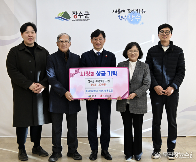 장수군은 농업기술센터 사랑나눔동호회(회장 강경오)가 지역 내 취약계층을 돕기 위해 이웃돕기 성금 120만 원을 기탁했다고 12일 밝혔다.
