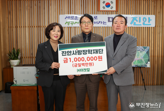 진안사랑장학재단(이사장 전춘성)은 ㈜더젓갈에서 장학금 100만원을 전달하며 지역 인재 양성에 힘을 보탰다고 밝혔다.