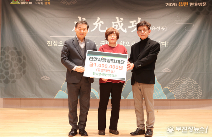 진안사랑장학재단은 지난 13일 관내 업소인 만리향과 진안DC마트에서 장학금 100만원을 전달했다고 밝혔다.