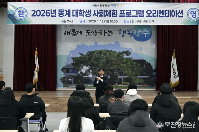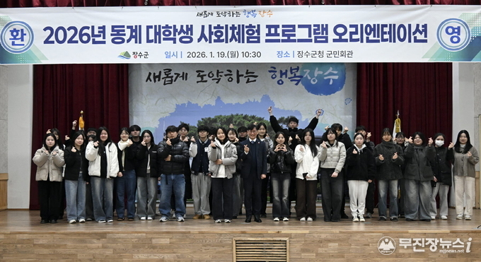 장수군은 19일 군청 군민회관에서 2026년 동계 대학생 사회체험 프로그램 ‘오리엔테이션’을 진행하고 3주 간의 행정체험 프로그램을 공식 시작했다고 밝혔다.