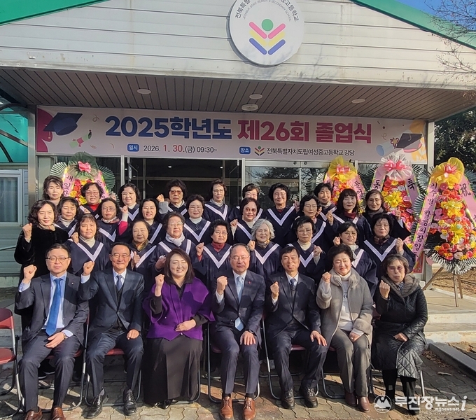 전북특별자치도립여성중고등학교(교장 김형태)는 이날 졸업생과 가족 등 220여 명이 참석한 가운데‘제26회 졸업식’을 개최했다. 중학교 과정 24명, 고등학교 과정 29명이 지난 3년간 일과 학업을 병행하며 값진 성과를 이뤘다. 이로써 학교는 설립 이후 총 1,711명의 졸업생을 배출하게 됐다.