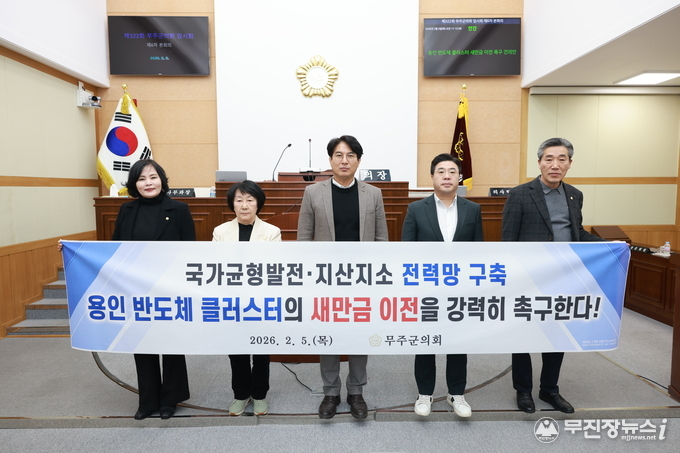 무주군의회는 지난달 27일부터 10일간 진행된 이번 임시회에서 2025년도 행정사무감사 지적사항 처리결과 보고, 조례안 및 공유재산 계획안 등 안건을 심사했다. 그리고 최윤선 산업건설위원장이 대표발의한 「용인 반도체 클러스터 새만금 이전 촉구 건의문」을 의원 만장일치로 채택했다.