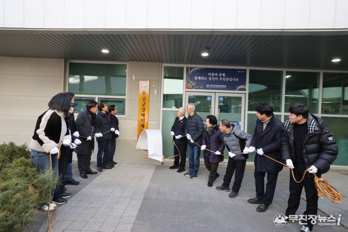 무주군장애인체육회(무주국민체육센터)가 지난 6일 사무실 현판 제막식을 열고 장애인 체육 업무를 전담할 사무국 운영의 시작을 알렸다.