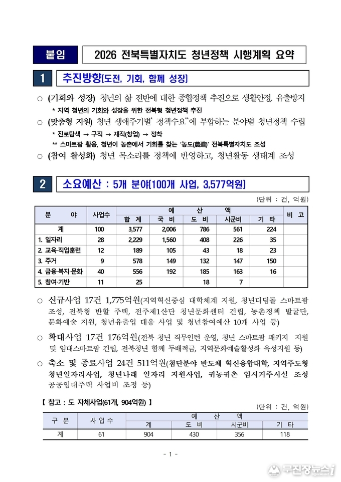전북특별자치도가 청년들의 안정적인 미래를 위해 올해 3,577억 원 규모의 청년정책을 본격 추진한다.