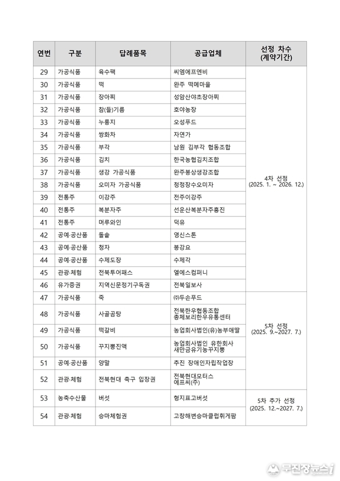 선정된 공급업체에는 오는 2028년 7월까지 전북 고향사랑기부제 답례품 공급 자격이 부여되며, 최종 선정 시 전국 기부자를 대상으로 한 공식 답례품 공급을 통해 제품 홍보 효과를 기대할 수 있다. 또한 위원회의 심의를 거쳐 선정되는 만큼, 상품에 대한 신뢰도와 공신력 제고 효과도 기대된다.
