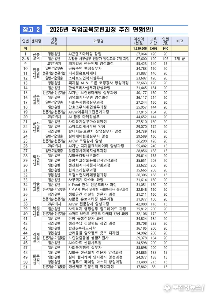 - (경력설계지원사업) 2→3개소(전북, 익산, 신규전주)
