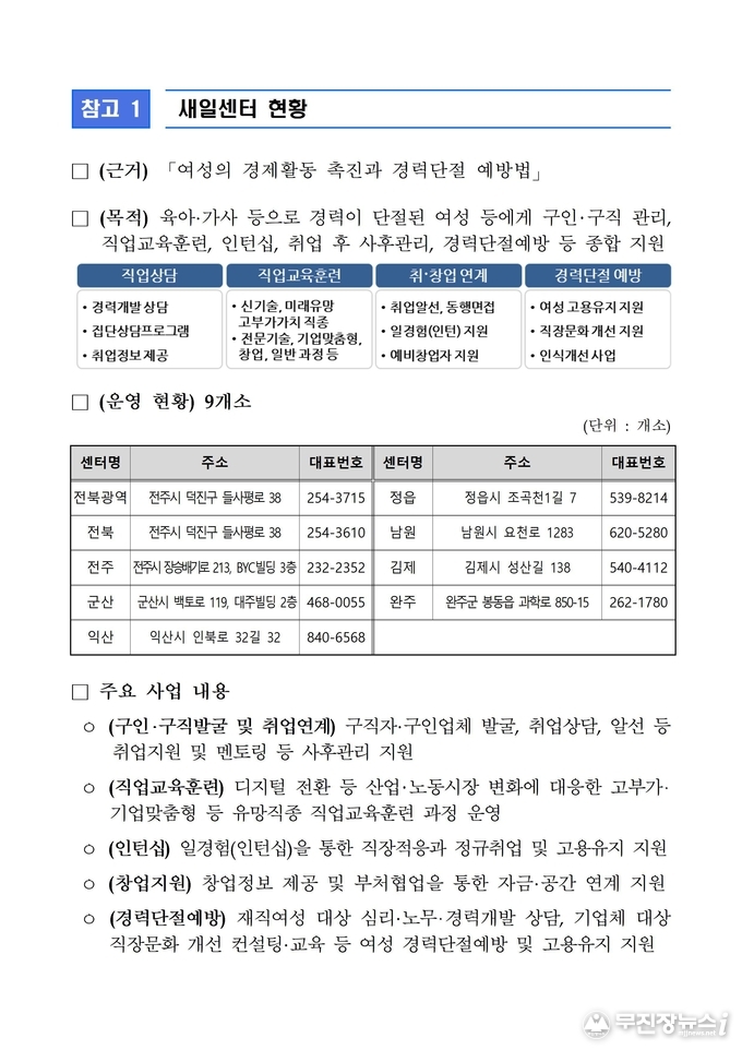- (경력단절예방사업) 5→6개소(광역,전북,전주,군산,익산,신규남원),