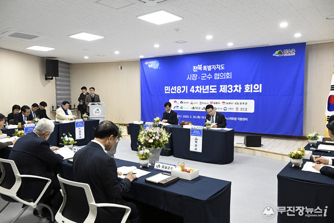 전북특별자치도 시장군수협의회(회장 정헌율)가 26일 장수군 스마트팜 지원센터에서 지속 가능한 발전과 지역 현안 해결을 위한 민선 8기 4차년도 제3차 회의를 개최했다.