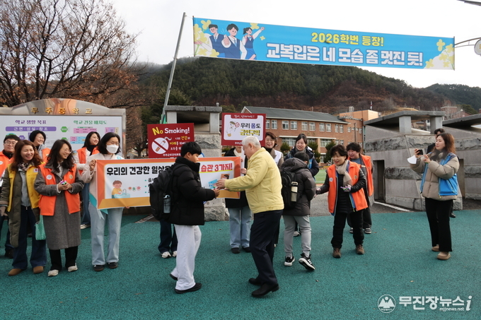 학생들 등교 시간에 맞춰 무주중학교 정문에서 진행된 이날 캠페인은 지역사회가 함께 청소년 보호의 중요성에 공감하고 건강한 성장 환경 조성에 앞장선다는 취지에서 마련된 것으로,