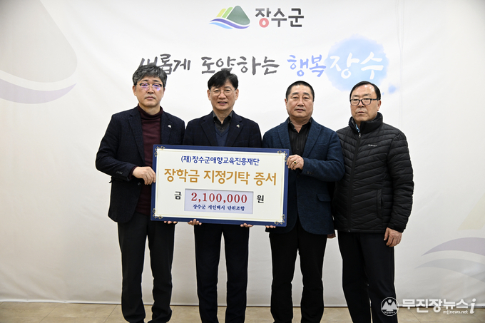 (재)장수군애향교육진흥재단(이사장 최훈식)은 장수군개인택시단위조합(조합장 정춘원)이 5일 군청을 찾아 장학금 210만원을 기탁했다고 밝혔다.