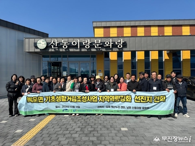 주민위원회는 김제시 백산면 ‘백산누리센터’와 남원시 산동면 ‘산동이랑 문화랑’을 차례로 방문해 시설의 공간 구성과 운영 사례를 확인하고, 향후 조성될 백운면 기초생활거점센터의 시설 배치 및 운영 방향을 심도 있게 검토했다.