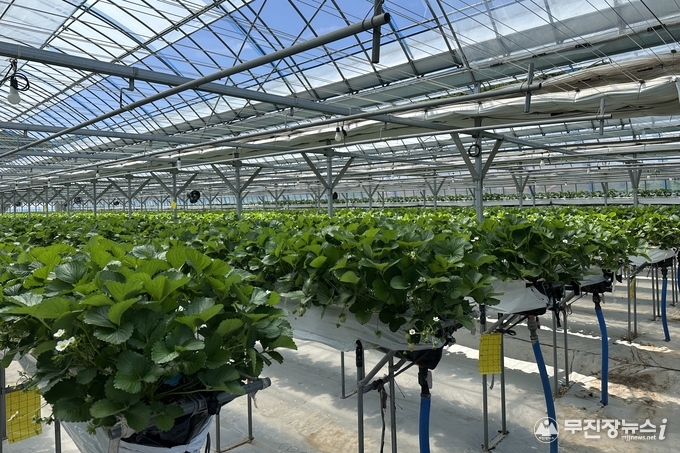 무주군이 청년농 정착과 지역 특화작목 경쟁력 강화를 위해 고랭지 청년 임대형 스마트팜단지를 중심으로 지역 여름딸기 농가와의 생산·유통·기술 분야 상생협력 체계 구축에 나선다.