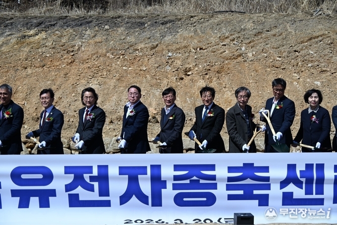 장수군은 20일 ㈜이티바이오텍에서 계남면 신전리에 본격적인 종축 연구개발 기반 구축을 위한 ‘한국유전자종축센터’ 조성 착공식을 개최했다고 밝혔다.