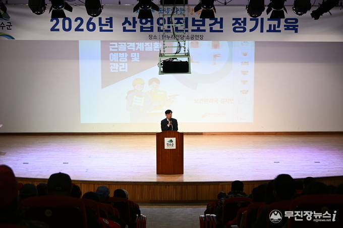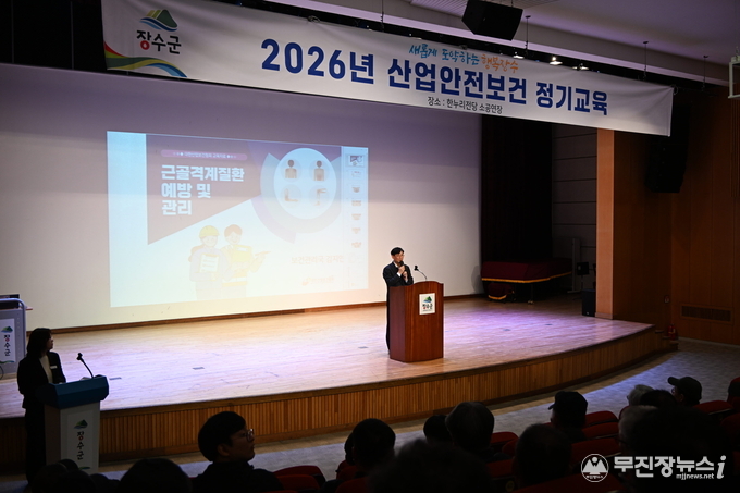 장수군은 지난18일 한누리전당 소공연장에서 군 소속 현업 근로자 300여 명을 대상으로 2026년 1분기 산업안전·보건 근로자 정기교육을 실시했다고 밝혔다.